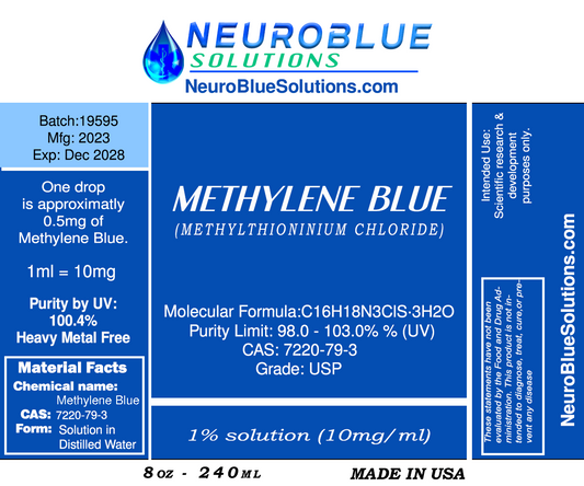 Methylene Blue USP Grade 8oz Bottle Refill - 1% Stock Solution