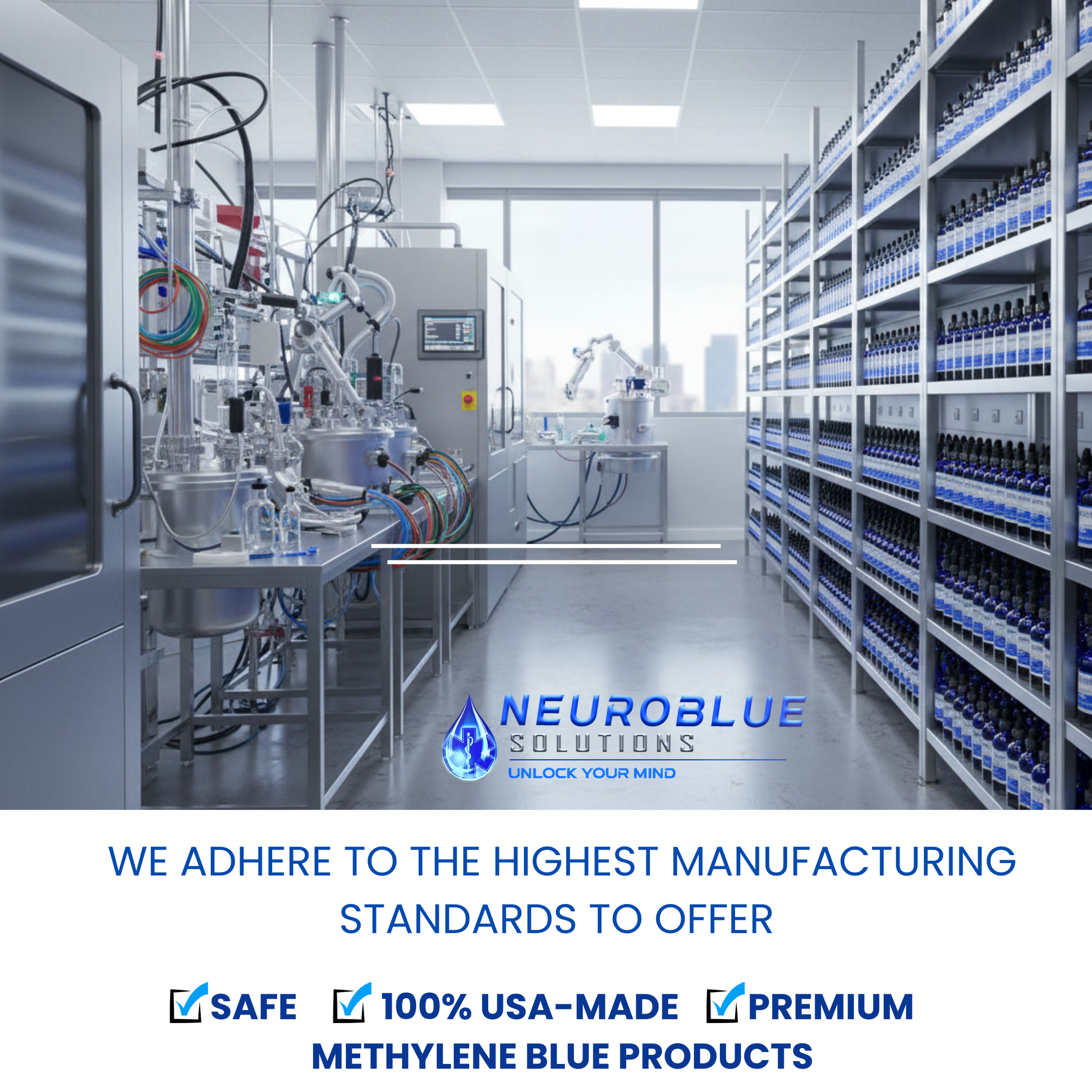 We value our customers and offer the best products possible. NeuroBlue methylene blue liquid drops are a USP pharmaceutical grade third-party laboratory-tested supplement. We offer you a safe 99.9% pure product manufactured in a facility adhering to the highest practices and quality standards.